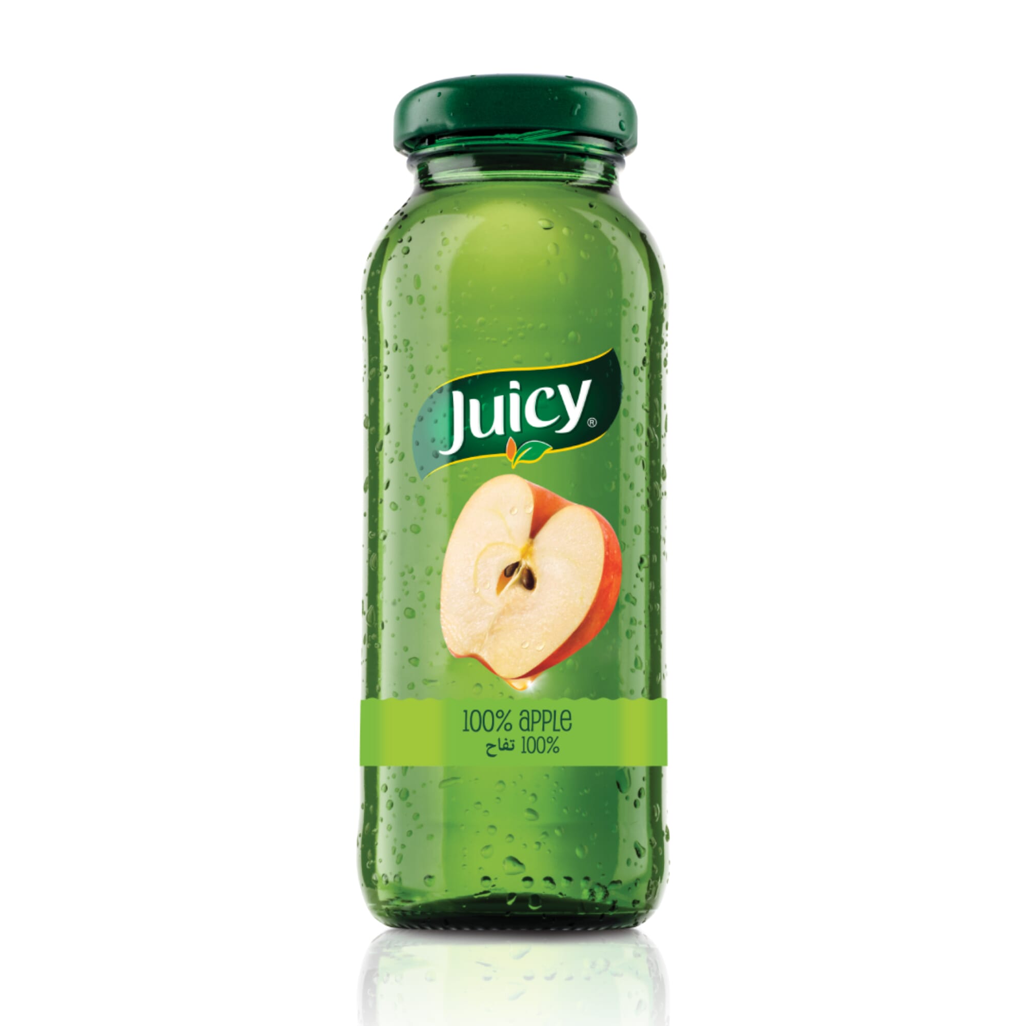 Juicy 100%?apple is a distinguished?representative of the exclusive?Juicy 100% line. Known as one of the?most widely distributed types of fruit,?apple is exceptionally refreshing, has a spec-?ific sweet-tart taste and recognisable flavour.?There are more than 7000 different varieties of?apple around the world, that differ in terms of their?flavour, sweetness, acidity and juiciness. When?you drink Juicy 100% apple, you will immid-?iately know that all the best properties of?this fruit have been captured within, and?that the flavour is always?at the highest level