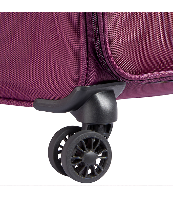 Maringa Collection. Travel with style with this durable and lightweight European design suitcase with expansion and double spinning wheels for smooth and multidirectional mobility. Top carry handle. Retractable top handle. Double zip-around closure. TSA approved lock. TSA carry-on compliant. Side carry handle. Four double spinner wheels. Inside tie-down straps. Lined. Shell: Durable DuraTec. Lining: Printed polyester. Wipe with a wet cloth.