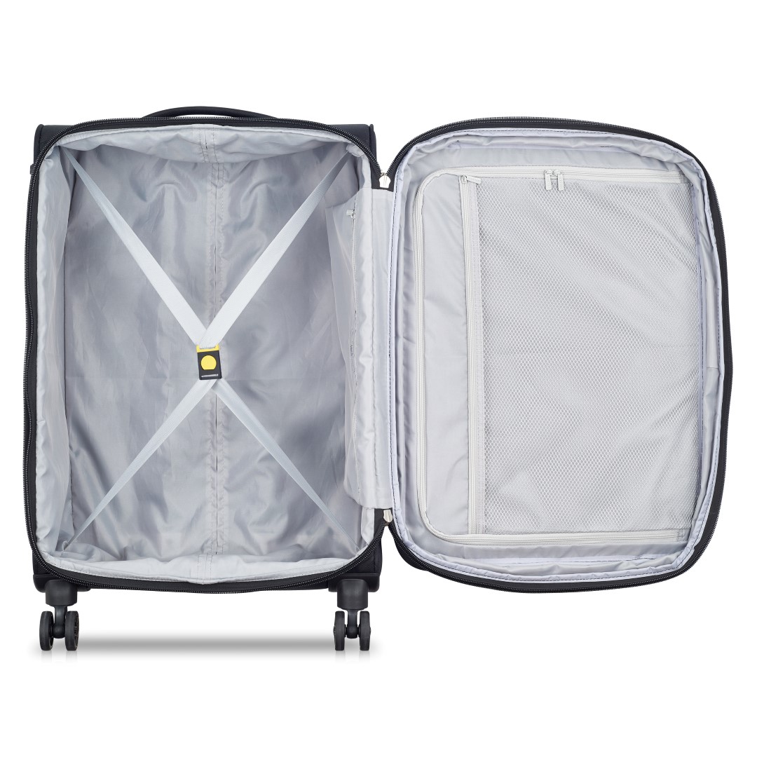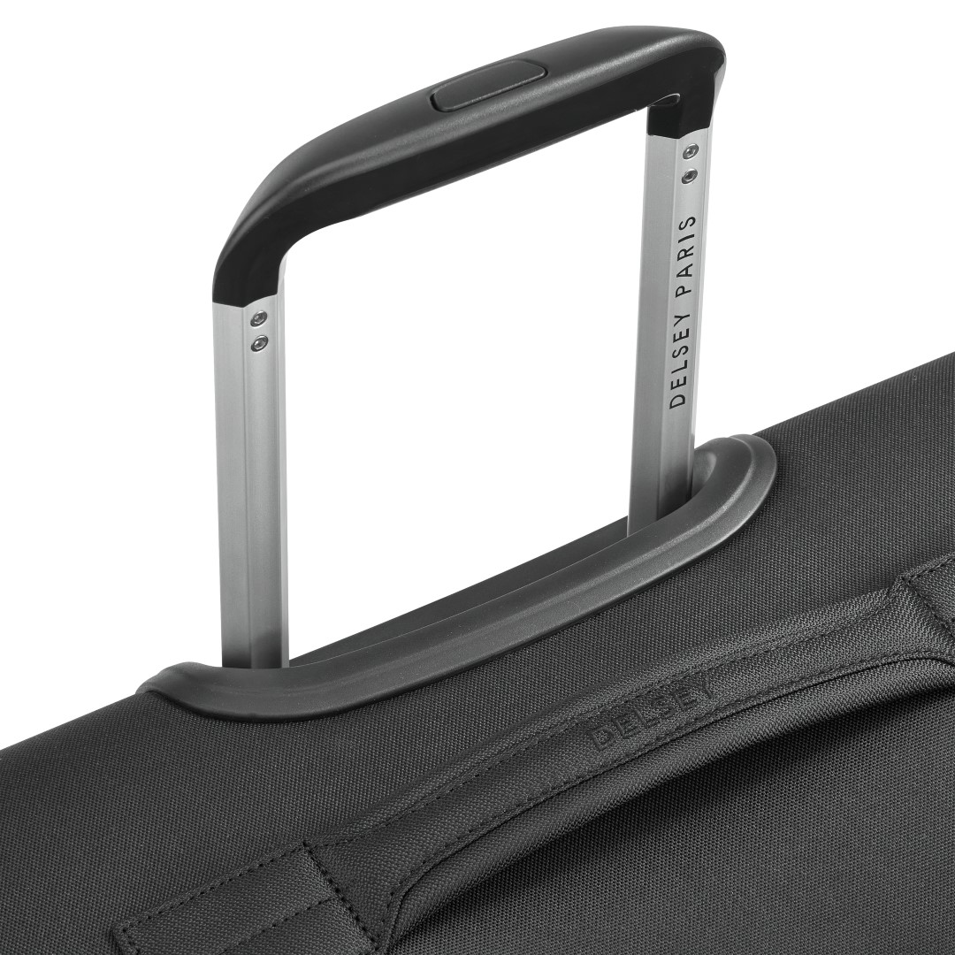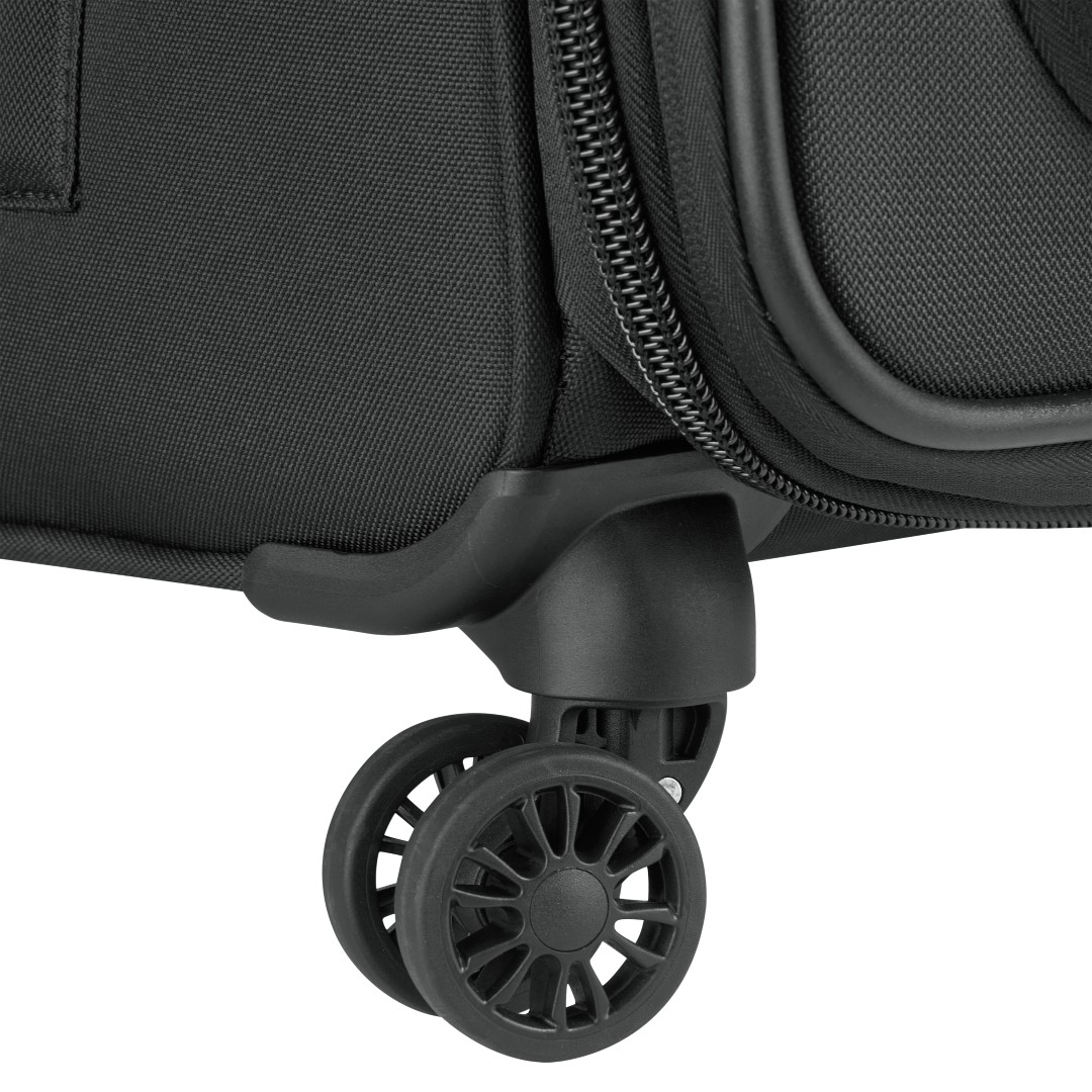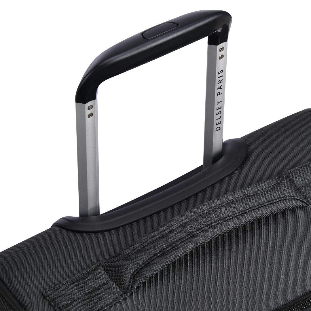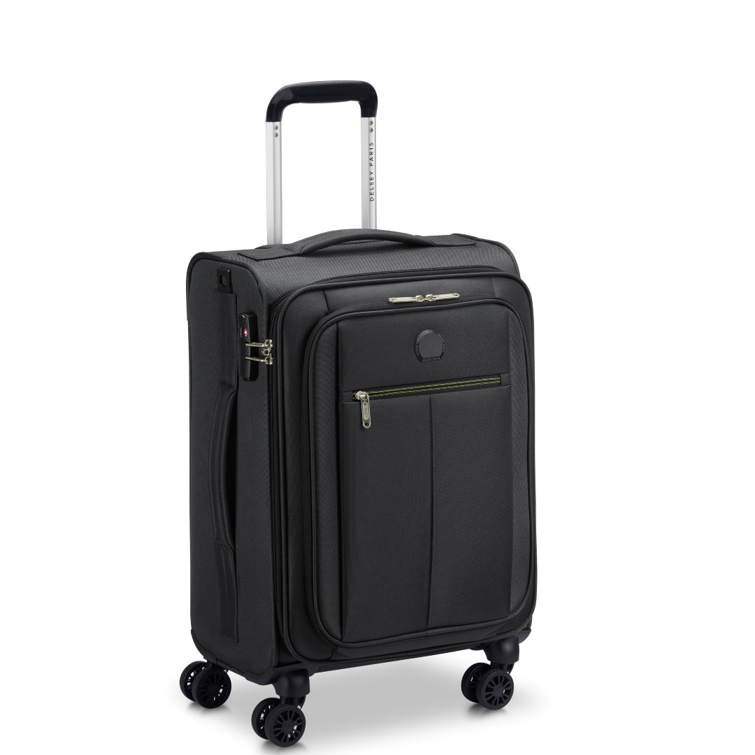 Delsey Paris Pin UP 6 cabin trolley is light to carry. Combined with its range of high practicality, this bag features a front pocket and handles on the top, bottom, and sides. The spacious interior compartments come with straps and a zipped pocket. It also features double wheels for easy rolling comfort to quickly make it your favorite travel companion.